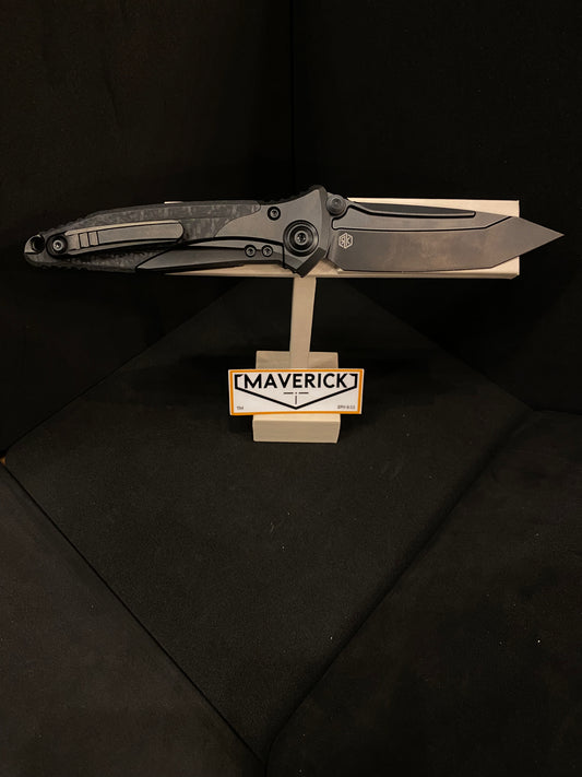 Microtech Socom Bravo Mini - S/E Bead Blasted Standard Blade Blue Titanium Pivot Collar Carbon Fiber Scales Titanium Handle