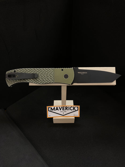 Pro-Tech Emerson - Green "Battle-Worn" Textured Handle, Two-Tone Blade