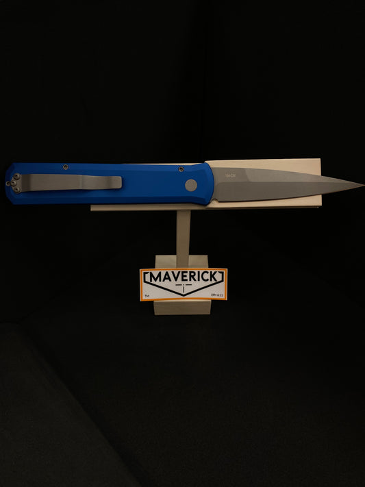 Pro-Tech Godfather - Blue Aluminum Handle, Stonewash Blade