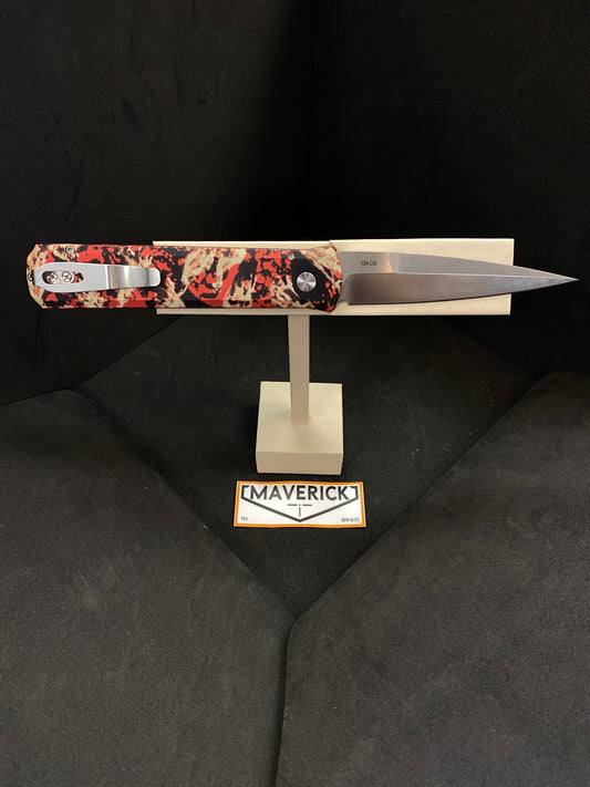 Pro-Tech Godfather - Crimson Tiger Camo Custom Anodized Handle, Satin Blade, Mother of Pearl Button