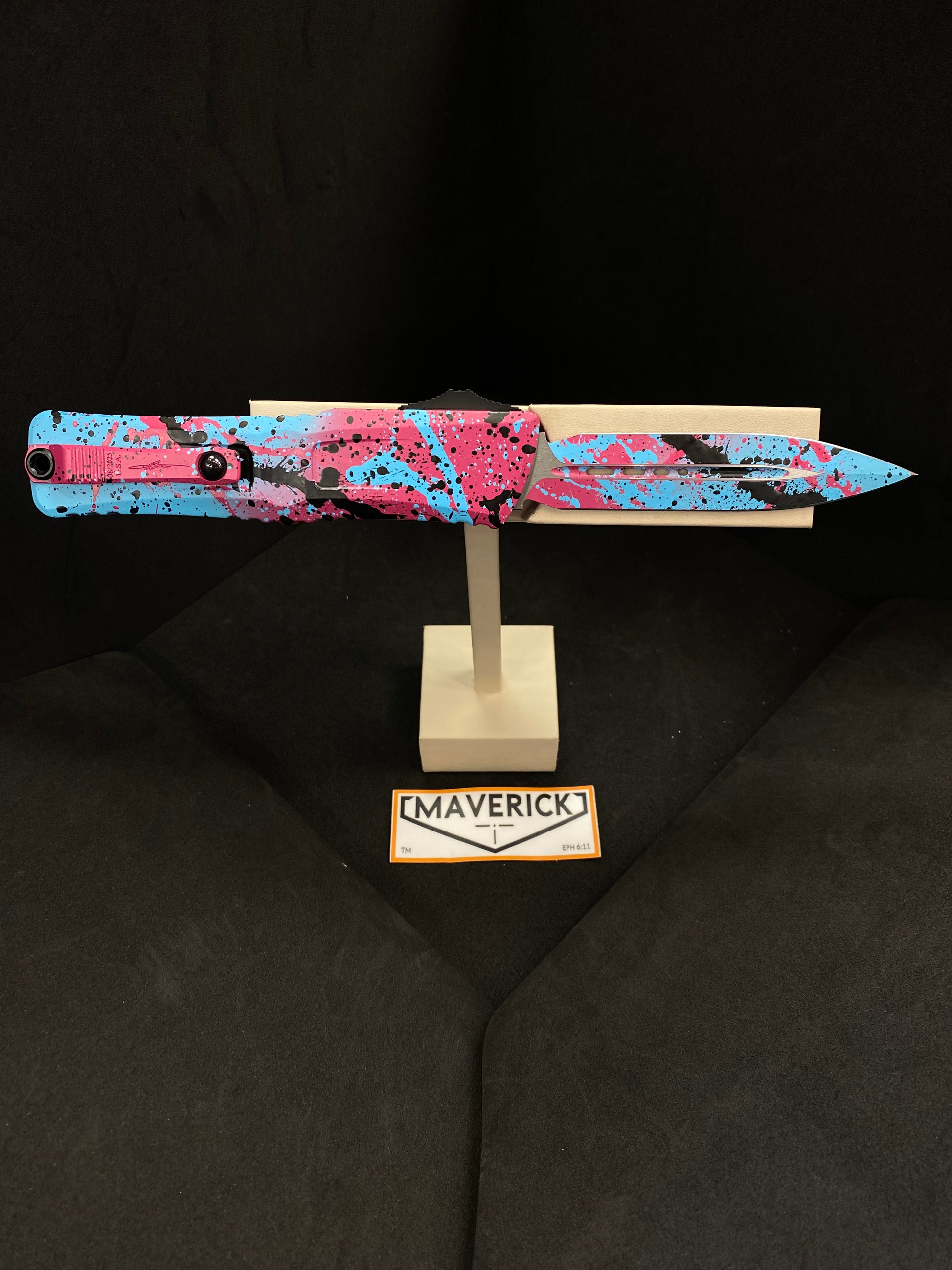 Microtech Combat Troodon - D/E Gen III Signature Series Light Blue/Pink Black Splatter