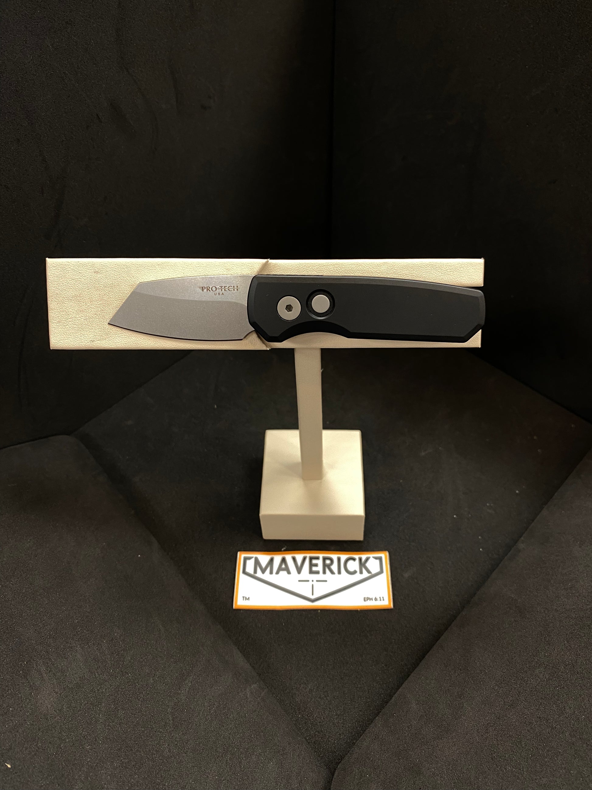 Pro-Tech Runt 5 - Smooth Black Handle, Stonewash Blade